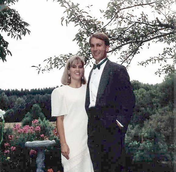 My husband,Pete, and I attend his brother's wedding in his parents back yard.